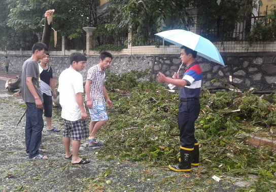 XPJ总厂守卫部接到值班职员报告后,,,,,,实时组织经警分队应急职员,,,,,,在谢秋生部长的向导下第一时间赶到现。。。,,,,,凭证XPJ总厂抗击台风预案举行相关应急处置惩罚。。。应急职员掉臂风急雨大,,,,,,认真、快速地整理着横在路面树杆,,,,,,在各人起劲加入抗台风活动的热情熏染下,,,,,,一名过路的小伙子也加入了整理事情。。。20分钟后,,,,,,横倒在路面的大树终于被整理完毕,,,,,,交通获得周全恢复。。。