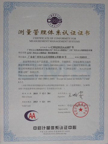 XPJ总厂凭证国家标准开展计量治理事情,,,,坚持规范化、标准化、系统化要求推进,,,,事情卓有效果。。。在2012年8月至11月时代,,,,经广东省和广州市质量手艺监视局,,,,以及中启计量系统认证中心广东分中心评价、确认、推荐,,,,XPJ总厂从二百多家“广东省二级计量包管系统”企业中脱颖而出,,,,被中启计量认证中心批准成为 “丈量治理系统”的企业,,,,并揭晓了“丈量治理系统证书”(AA级),,,,这标记总厂计量治理已抵达国际水平。。。
