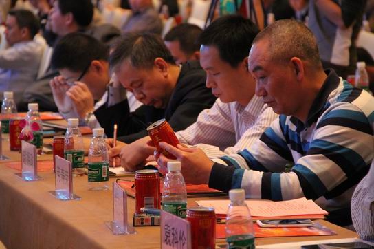 与会职员对喜庆、吉祥的王老吉红罐饮料体现极大的兴趣和支持