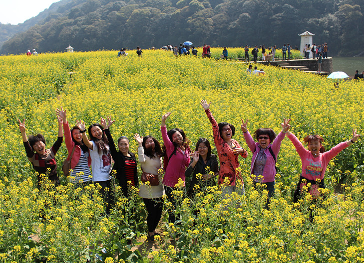 凭栏远望,,,,,上百亩的油菜花田,,,,,绵延一直。。。微风吹过,,,,,漫天遍野的油菜花摇曳生姿,,,,,淡淡的花香在鼻尖萦绕不散。。。阳光下,,,,,湖面波涛折射出一个个梦幻的圆圈,,,,,给人们带来心灵的安定宁悄悄。。。不远处,,,,,山谷林立,,,,,翠色葱葱,,,,,在蓝天的映衬下,,,,,相得益彰。。。;;;;ㄌ锢,,,,,游人如织,,,,,或与蜜蜂嬉戏,,,,,或与蝴蝶起舞,,,,,组成了一幅心旷神怡的田园景物。。。