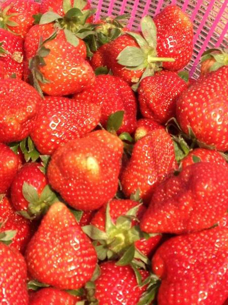 一下车,,,,,我们争先恐后地拿了水果篮和铰剪,,,,,迫不急待地奔向草莓园里,,,,,最先采摘草莓。。。弯下腰,,,,,拨开叶子,,,,,仔细掘客。。。茂密的草莓地果实累累、鲜红的草莓让人垂涎欲滴。。。我们时而忍不住品尝一番、时而较量较量谁摘的草莓更大更靓、时而拍个照留下我们采摘草莓时的倩影。。。缕缕草莓清香在身旁围绕、阵阵欢声笑语在田间飘扬、丝丝温暖甜蜜在心头激荡……