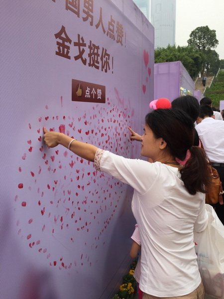而线下活动现场,,,也充满了眷注男性的气氛。。。。。。记者看到,,,此次不但有与男性康健相关的科普知识展示,,,会场还设置了“减压区”和“点赞区”,,,让活动加入者充分互动,,,关爱男性康健的气氛异常热烈。。。。。。不少情侣、伉俪纷纷在按下象征关爱的心形指模,,,表达对对方的爱。。。。。。整个口号墙上,,,都点满了活动加入者的“赞”!据相识,,,每一位加入活动的人都可以获得“金戈康健锦囊”1个。。。。。。以为自己压力重大的男性还可以在活动现场的减压区,,,向小玉人索抱求减压,,,因此减压区也排起了长长的步队。。。。。。拥抱男性的女生体现:“拥抱一下虽然无法真正解决他们心田的压力,,,但至少可以表达出我们对他们的关爱和支持。。。。。。”