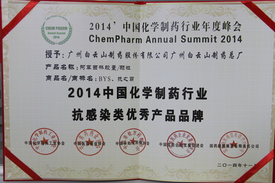 阿莫西林胶囊/颗粒;;瘛2014中国化学制药行业抗熏染类优异产品品牌”